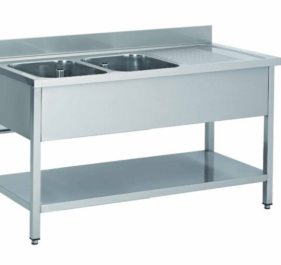 PLONGE INOX 304 DEMONTABLE, 2 BACS 600X500X300 MM PIEDS CARRES, EGOUTTOIR A DROITE , ETAGERE BASSE