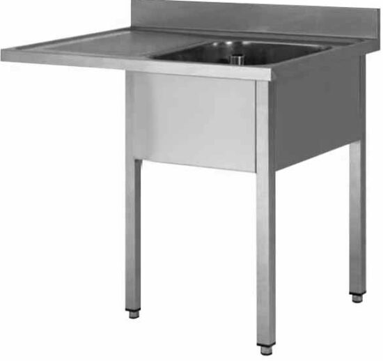 PLONGE INOX DEMONTABLE ENCASTREMENT LV, 1 BAC 400X400X250 MM, PIEDS CARRES, EGOUTTOIR A GAUCHE