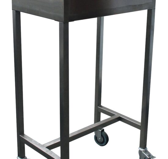 PUPITRE INOX 304, SUR PIETEMENT AVEC ROULETTES CHAPE ZINGUEE, SANS FERMETURE A CLEFS