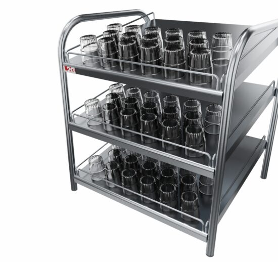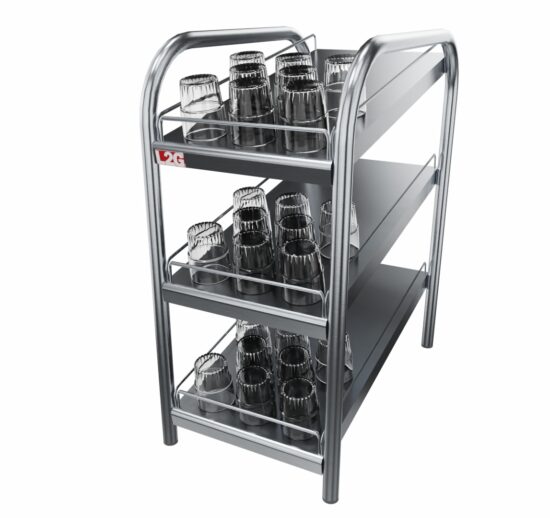 ETAGERE SOUDEE INOX 304, 3 NIVEAUX INCLINES POUR VERRES
