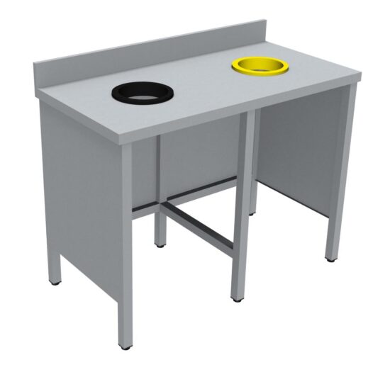 MEUBLE DE TRI INOX 304, SANS PORTE, SANS RAMPE A PLATEAUX, AVEC DOSSERET, 2 TVO: 1 N + 1 J