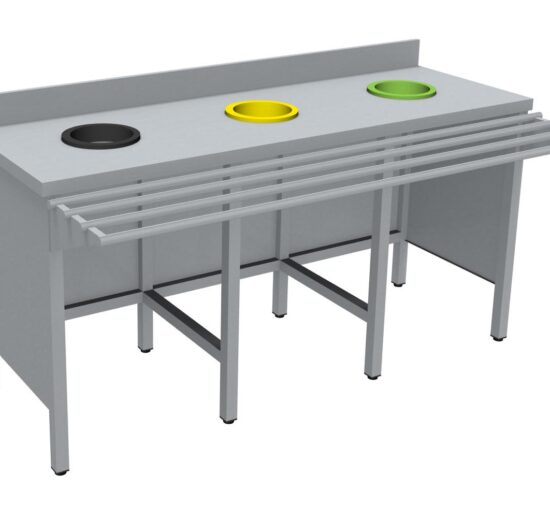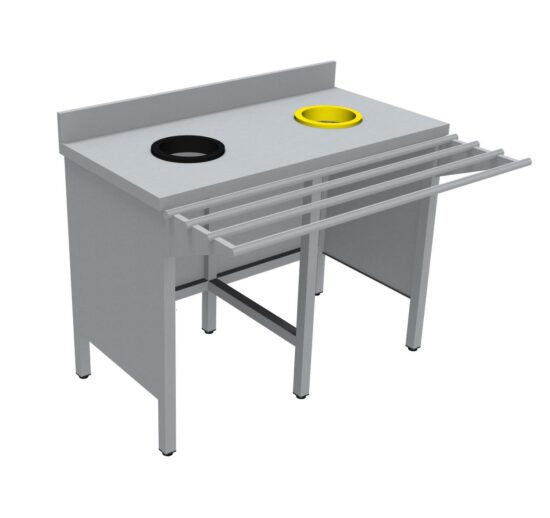 MEUBLE DE TRI INOX 304, SANS PORTE, AVEC RAMPE A PLATEAUX, AVEC DOSSERET, 2 TVO: 1 N + 1 J