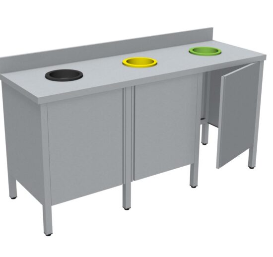 MEUBLE DE TRI INOX 304, 3 PORTES, SANS RAMPE A PLATEAUX, AVEC DOSSERET, 3 TVO : 1N+1J+1V