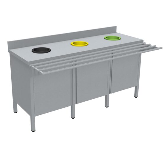 MEUBLE DE TRI INOX 304, 3 PORTES, AVEC RAMPE A PLATEAUX, AVEC DOSSERET, 3 TVO : 1N+1J+1V