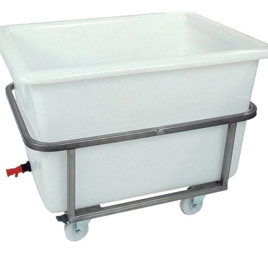 BAC A GLACE POLYETHYLENE 500 LITRES SUR CHASSIS INOX ROULANT