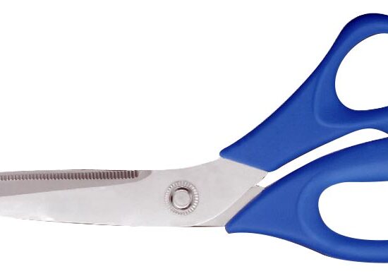 • CISEAUX A POISSON EN INOX AVEC LAME CRANTEE, ANNEAUX BLEUS