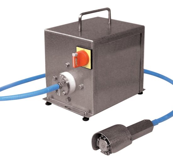 TRONCONNEUSE A POISSON INOX A POSER SUR TABLE, LAME D.400 MM, AVEC SYSTEME D’INJECTION