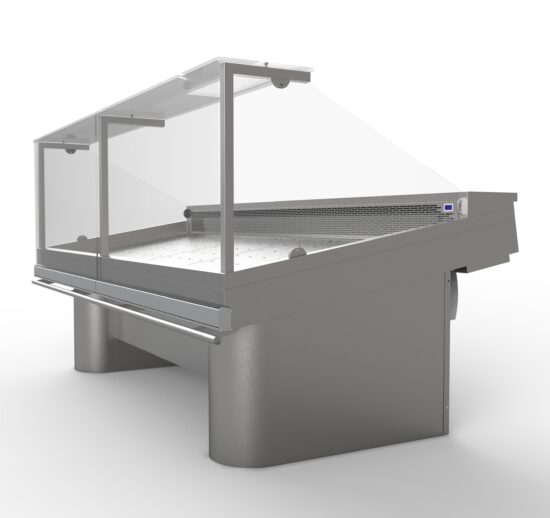 ETAL REFRIGERE DROIT SUR GROUPE, FROID DE CONTACT, VITRES BASCULANTES, PIEDS OBLONGS