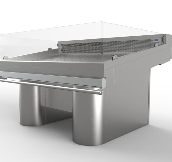 ETAL REFRIGERE DROIT SUR GROUPE, FROID DE CONTACT, VITRES BASCULANTES, PIEDS OBLONGS