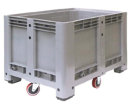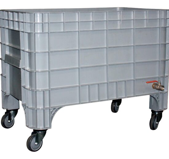 BAC A GLACE ROULANT POLYETHYLENE 610 LITRES AVEC VIDANGE PAR VANNE A BILLE 1″ COULEUR GRIS