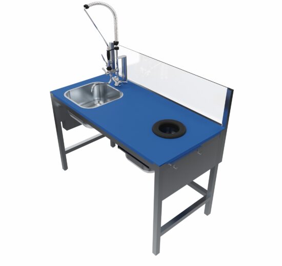 COMBINE DE PREPARATION POISSON SIMPLE POSTE DESSUS POLY BLEU AVEC UN BAC 400X400 MM