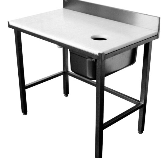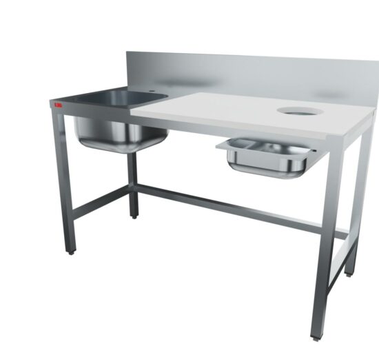 TABLE PREPARATION POISSON 1 BAC, SANS TIROIR DESSUS POLY BLANC EP.25 MM, DOSSERET 200X20 MM