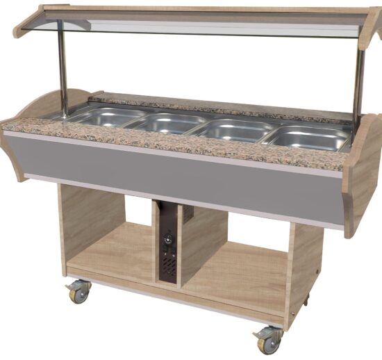BUFFET BAIN-MARIE CENTRAL CHAUFFANT, +30/+90°C, CUVE 4GN1/1-150, PORTE-ASSIETTES GRANIT