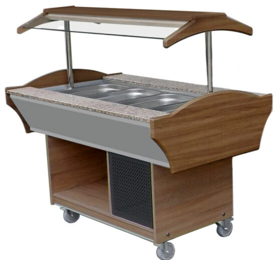 BUFFET REFRIGERE CENTRAL, FROID STATIQUE 0/+10°C, CUVE 4GN1/1-150, HABILLAGE COULEUR TECK