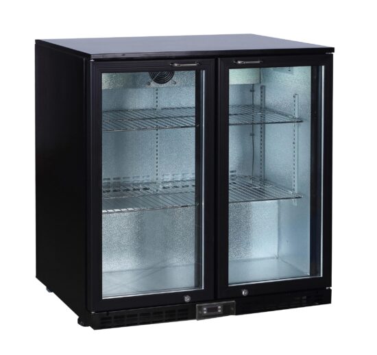 MEUBLE ARRIERE DE BAR, SKIN PLATE 0/+8°C, 2 PORTES BATTANTES VITREES, 4 CLAYETTES