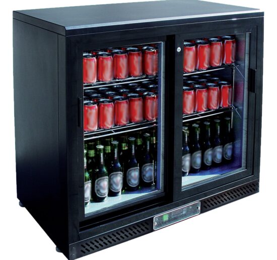 MEUBLE ARRIERE DE BAR, SKIN PLATE 0/+8°C, 2 PORTES COULISSANTES VITREES, 4 CLAYETTES