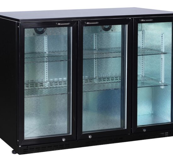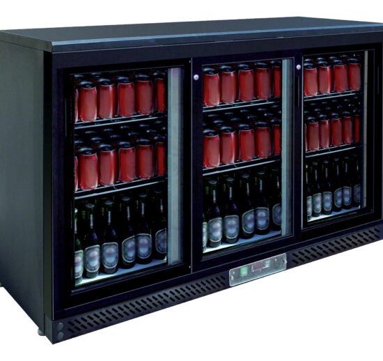 MEUBLE ARRIERE DE BAR SKIN PLATE 0/+8°C, 3 PORTES BATTANTES VITREES, 6 CLAYETTES