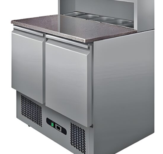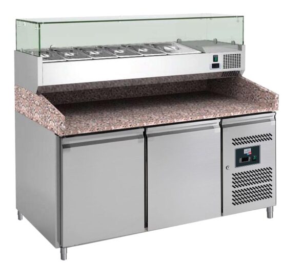 TABLE A PIZZA DESSUS GRANIT, +2/+8°C, GAZ R600A 2 PORTES GN1/1, CAP.5GN1/6 NON COMPRIS