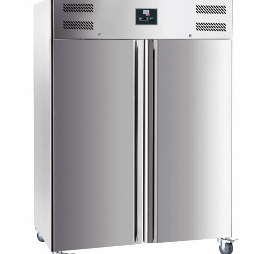 ARMOIRE REFRIGEREE INOX 2 PORTES-18/-22°C FROID VENTILE, 6 GRILLES GN2/1, 4 ROULETTES Ø100MM