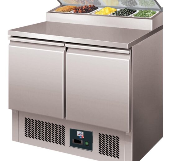 TABLE A SANDWICHES REFRIGEREE +2/+8°C, GAZ R290 DESSUS INOX, 2 PORTES 400X600 MM