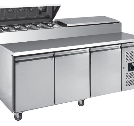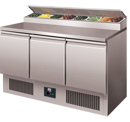 TABLE A SANDWICHES REFRIGEREE +2/+8°C GAZ R290, DESSUS INOX, 3 PORTES 400X600 MM