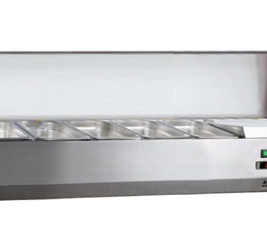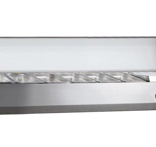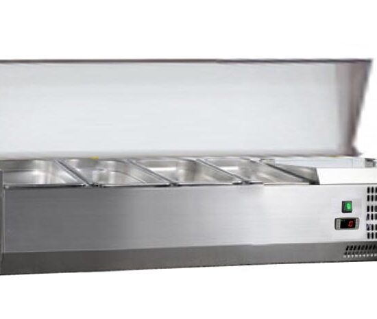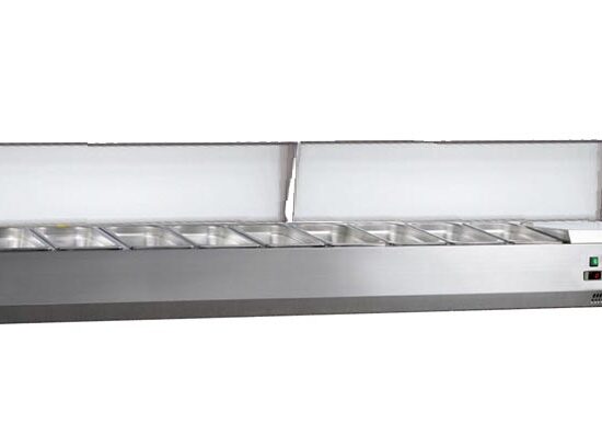 VITRINE A INGREDIENTS INOX, +2/+8°C, GAZ R600A COUVERCLE INOX, 5GN1/3 + 1GN1/2-150 NON COMPRIS