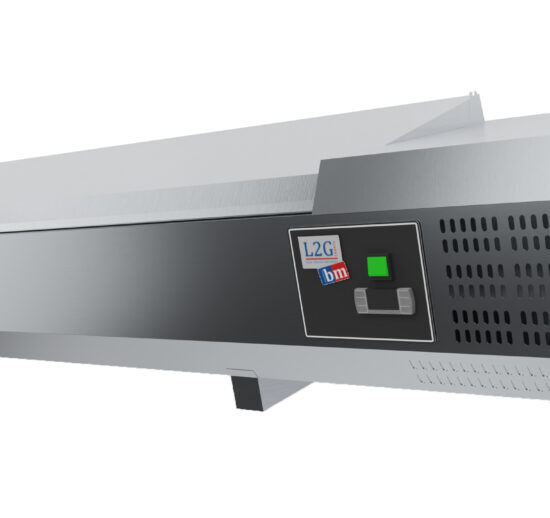 VITRINE A INGREDIENTS INOX, +2/+8°C, AVEC PARE-HALEINE, 3GN1/3-150 + 1GN1/2-150 NON COMPRIS