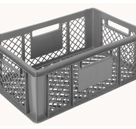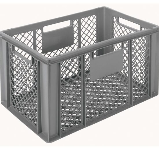 BAC EURONORM 600X400 H350 MM GERBABLE ET EMPILABLE FOND ET PAROIS AJOURES, COULEUR GRISE