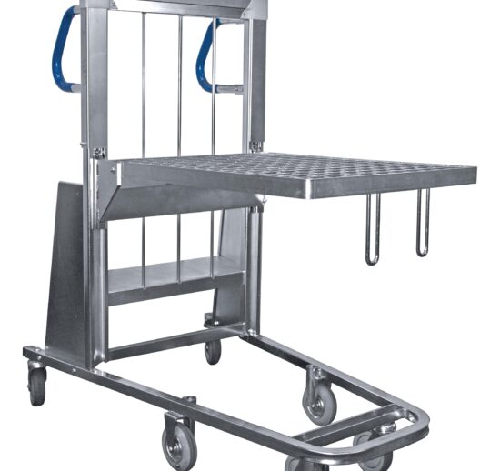 DESSERTE EMBOITABLE A FOND AUTO-ELEVATEUR 6 ROUES D.125 MM, PLATEAU 800X600 MM