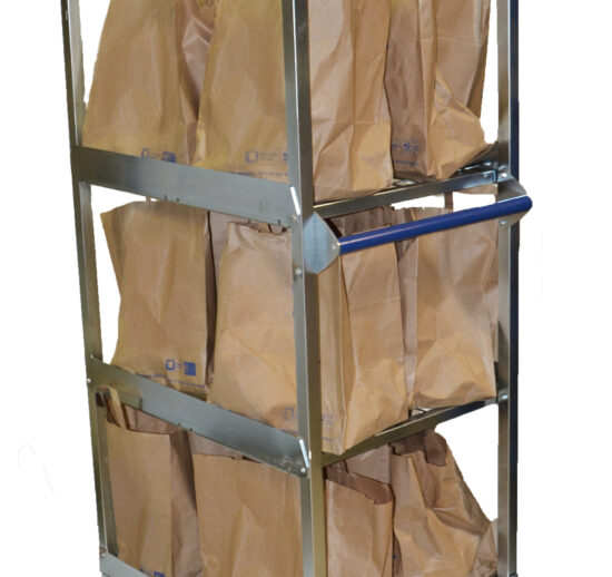 CHARIOT DRIVE 12 SACS AVEC SYSTEME DE FREIN CENTRALISE SUR 2 ROUES PIVOTANTES COMMANDE