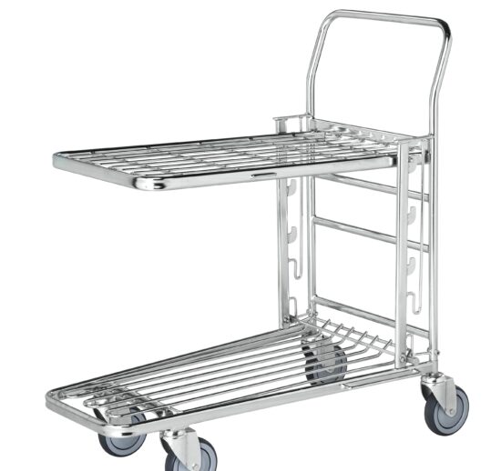 CHARIOT DE MANUTENTION GALVANISE AVEC VERNIS TRANSPARENT EMBOITABLE, 2 NIVEAUX