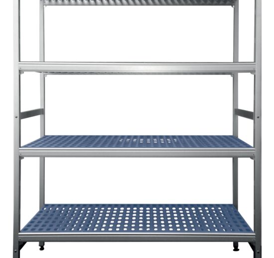 RAYONNAGE ALUMINIUM ECO 5 NIVEAUX, CLAYETTES POLYPROPYLENE