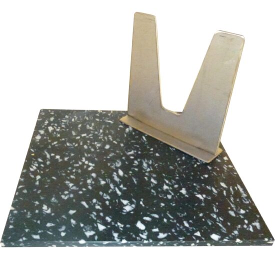 SUPPORT JAMBON INOX 304 EP. 30/10E AVEC PLAQUE POLY MARBRÉE NOIR MOUCHETÉ BLANC