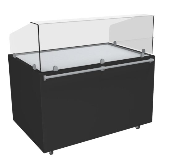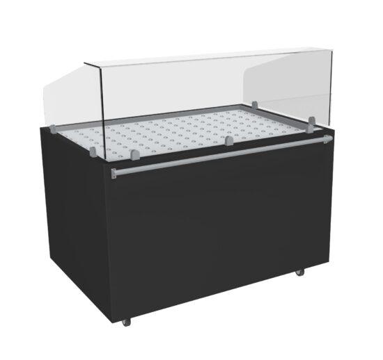 MEUBLE PIZZA CHAUFFANT 120°C OUVERTE DESSUS INOX VITRE AVANT INCLINEE H.450 MM