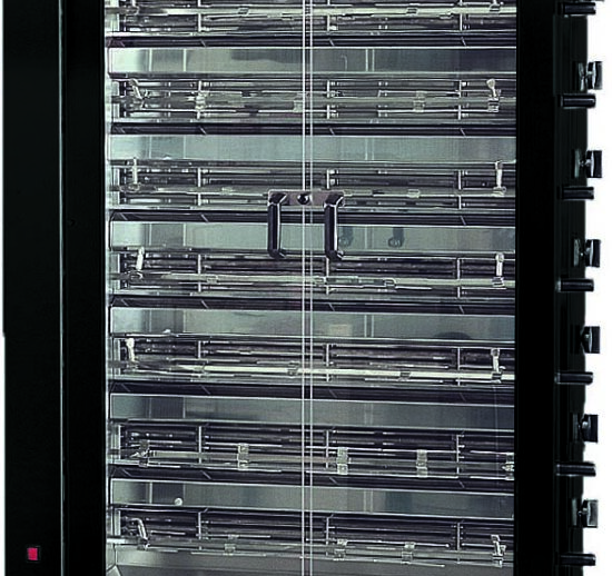 ROTISSOIRE ELECTRIQUE 8 BROCHES EN V 48 POULETS, COULEUR NOIRE,AVEC ECLAIRAGE INTERIEUR