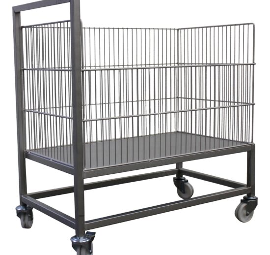 CHARIOT DE CHARGEMENT VIENNOISSERIE INOX, SUR ROULETTES DONT 2 A FREINS D.100 MM