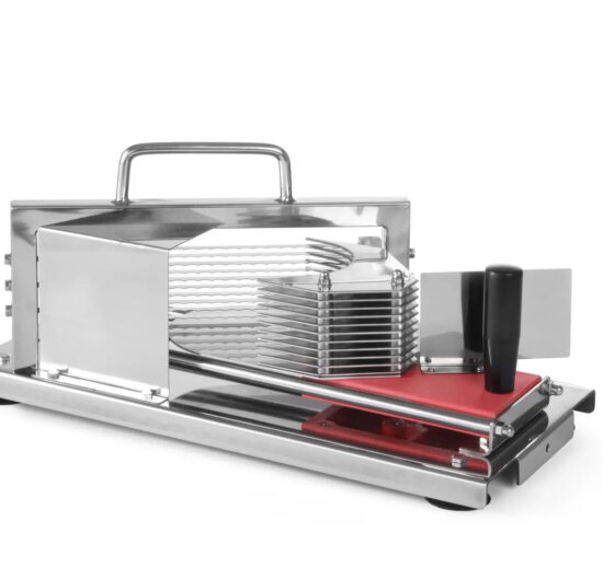 • COUPE TOMATES EN RONDELLES, EP. DE COUPE 5 MM TOUT INOX, 4 VENTOUSES POUR FIXATION SUR TABLE