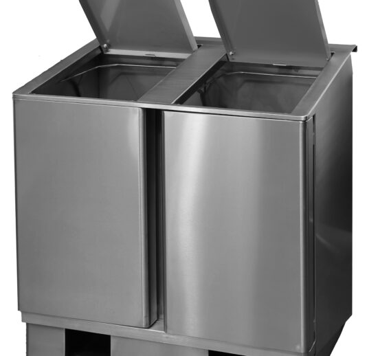 POUBELLE DE TRI SELECTIF INOX 304 A OUVERTURE FRONTALE, 2 PORTES BATTANTES, COUVERCLES AVEC