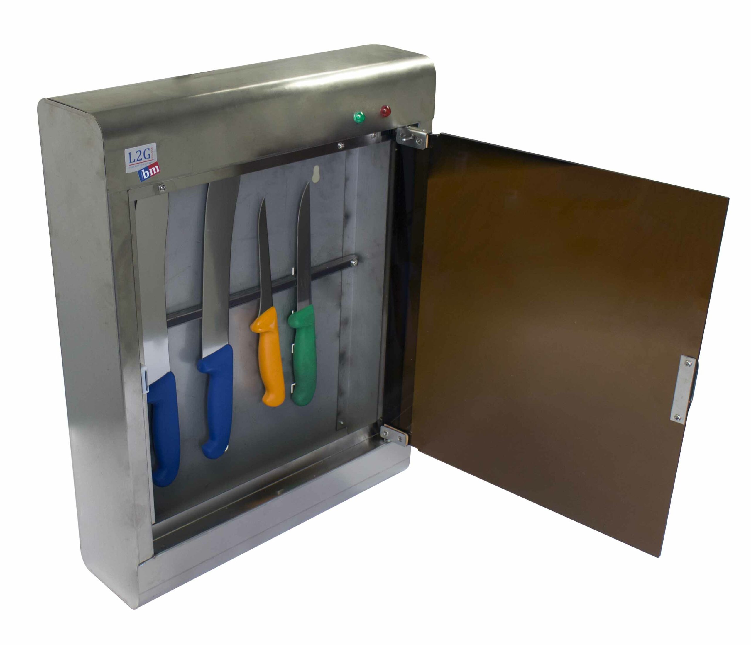 ARMOIRE INOX A STERILISER A AIMANT AVEC TUBE UV 8W STOCKAGE 10 COUTEAUX, PORTE PLEXI, MINUTERIE