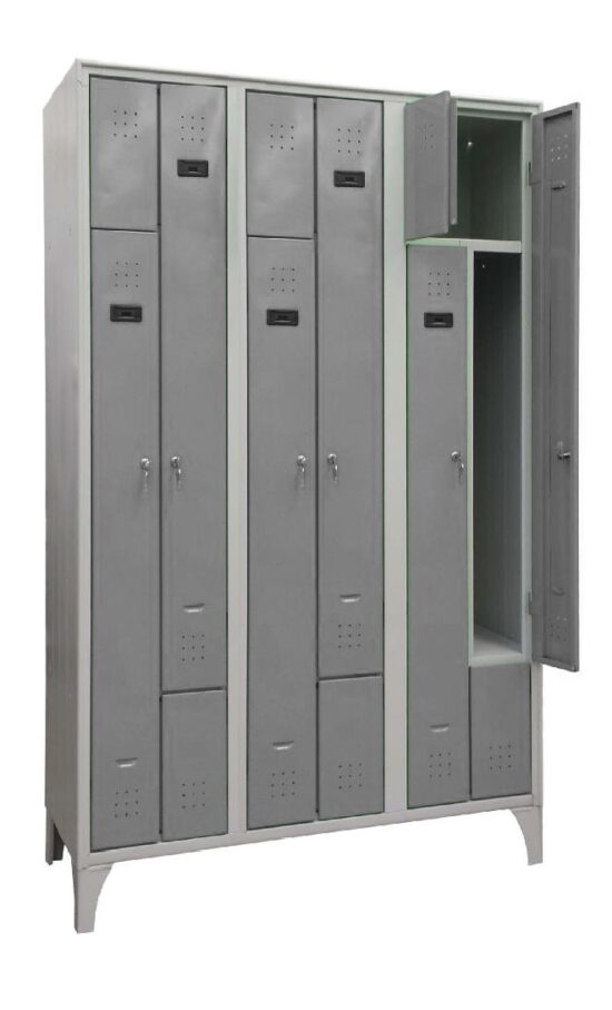 ARMOIRE VESTIAIRE GAIN DE PLACE, TYPE L, 3 COLONNES DE 2 CASES L-400 MM, GRIS RAL 7035