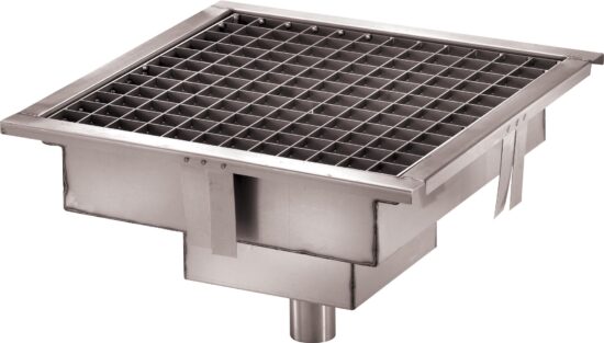 CANIVEAU INOX GRILLE A DECHETS AMOVIBLE, SIPHON SORTIE HORIZONTALE D.50 MM