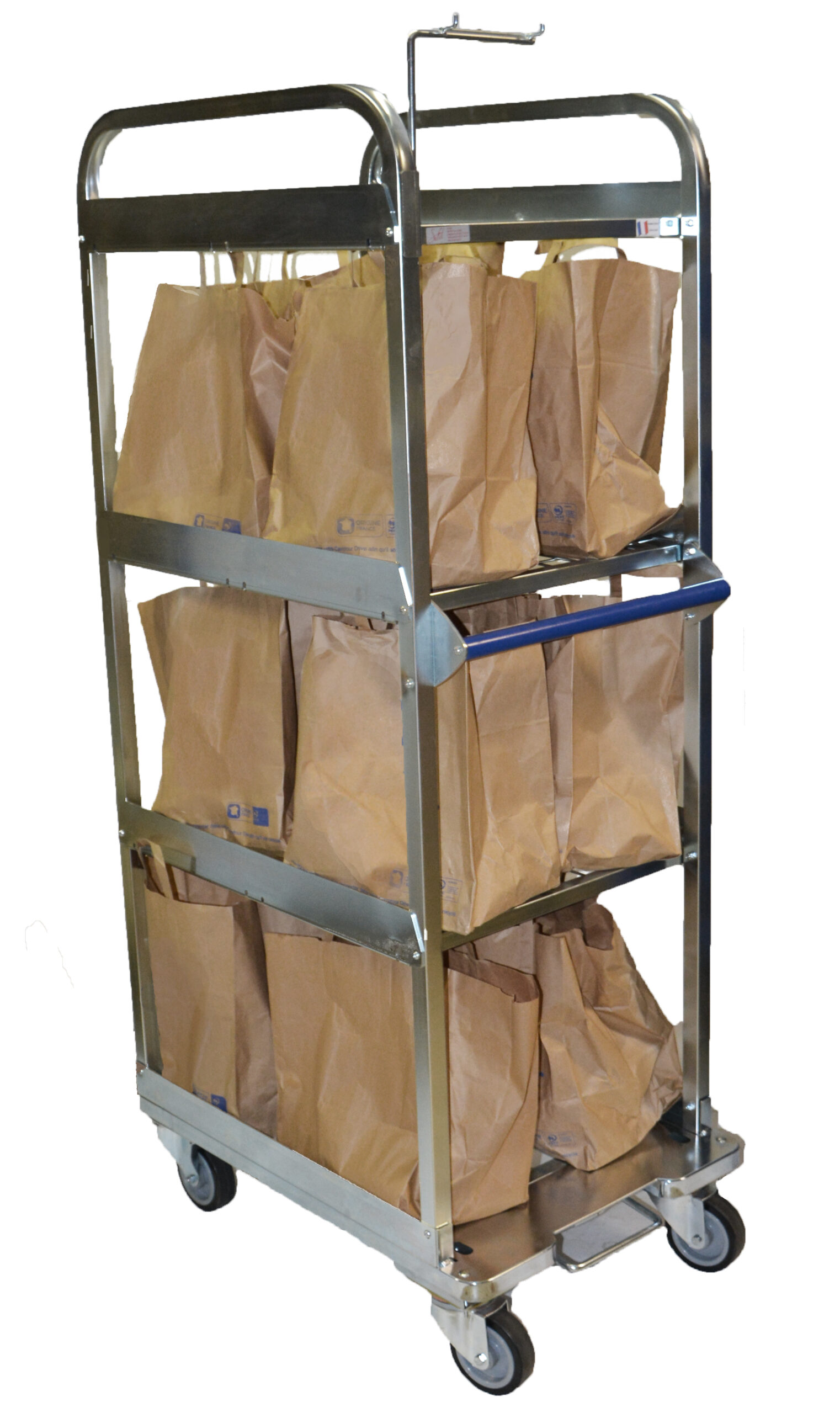 CHARIOT DRIVE 12 SACS AVEC SYSTEME DE FREIN CENTRALISE SUR 2 ROUES PIVOTANTES COMMANDE
