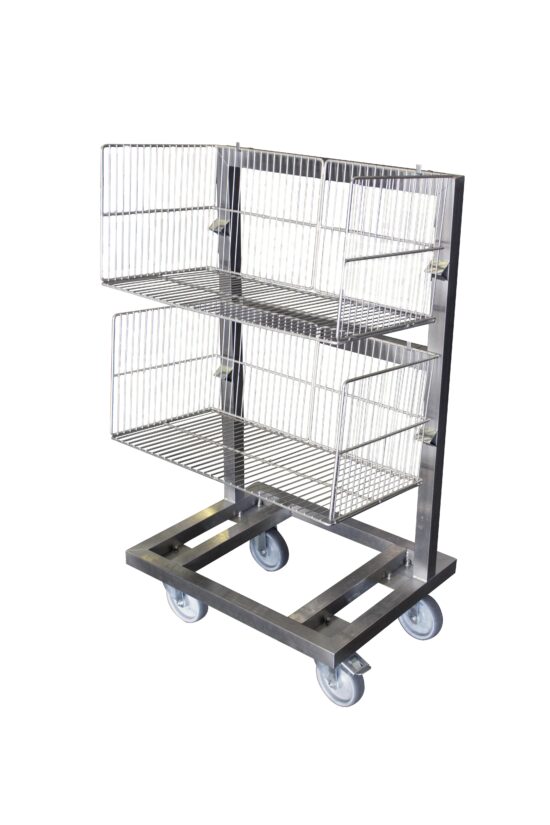 CHARIOT INOX SUPPORT 2 PANIERS A BARQUETTES DE DIM. 650X350X300 MM