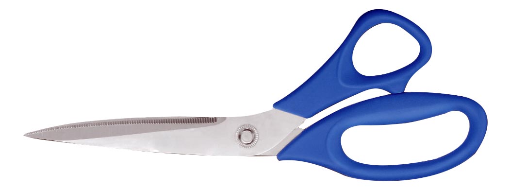 CISEAUX A POISSON EN INOX AVEC LAME CRANTEE, ANNEAUX BLEUS