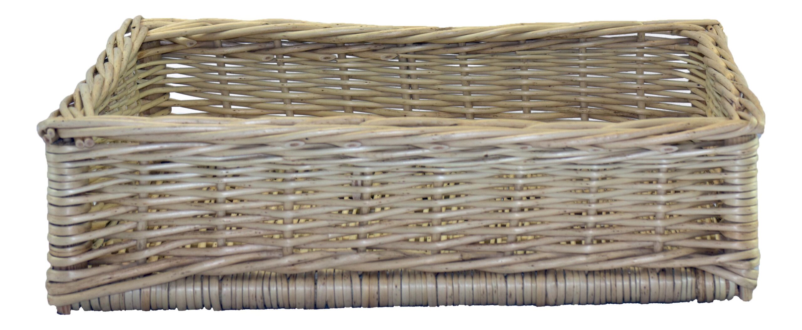 CORBEILLE DE PRESENTATION OSIER BLANC HAUTEUR AVANT 100, HAUTEUR ARRIERE 200
