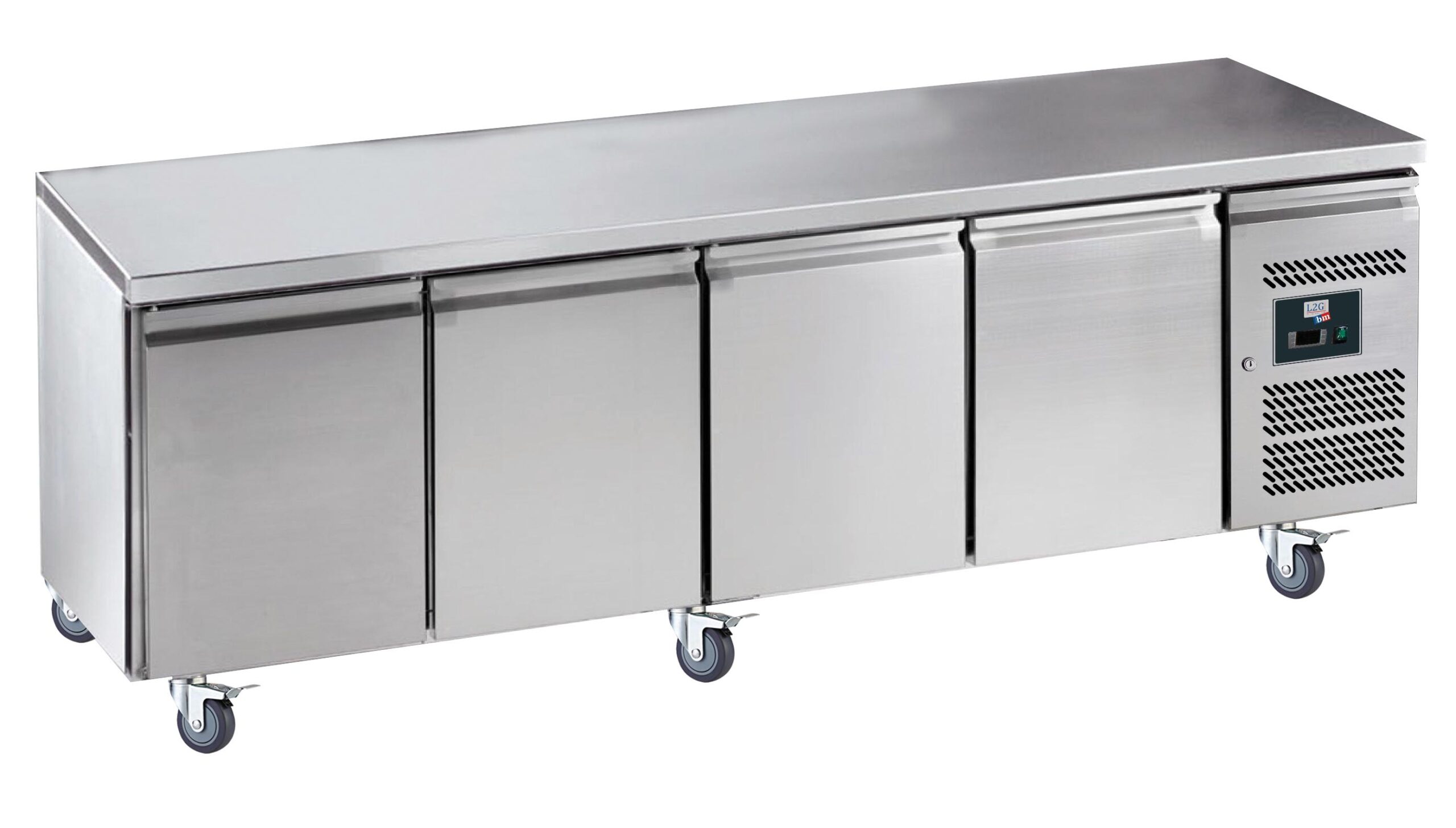 DESSERTE REFRIGEREE INOX, -2/+8°C, 4 PORTES 430X333 MM, SUR ROULETTES Ø 100MM