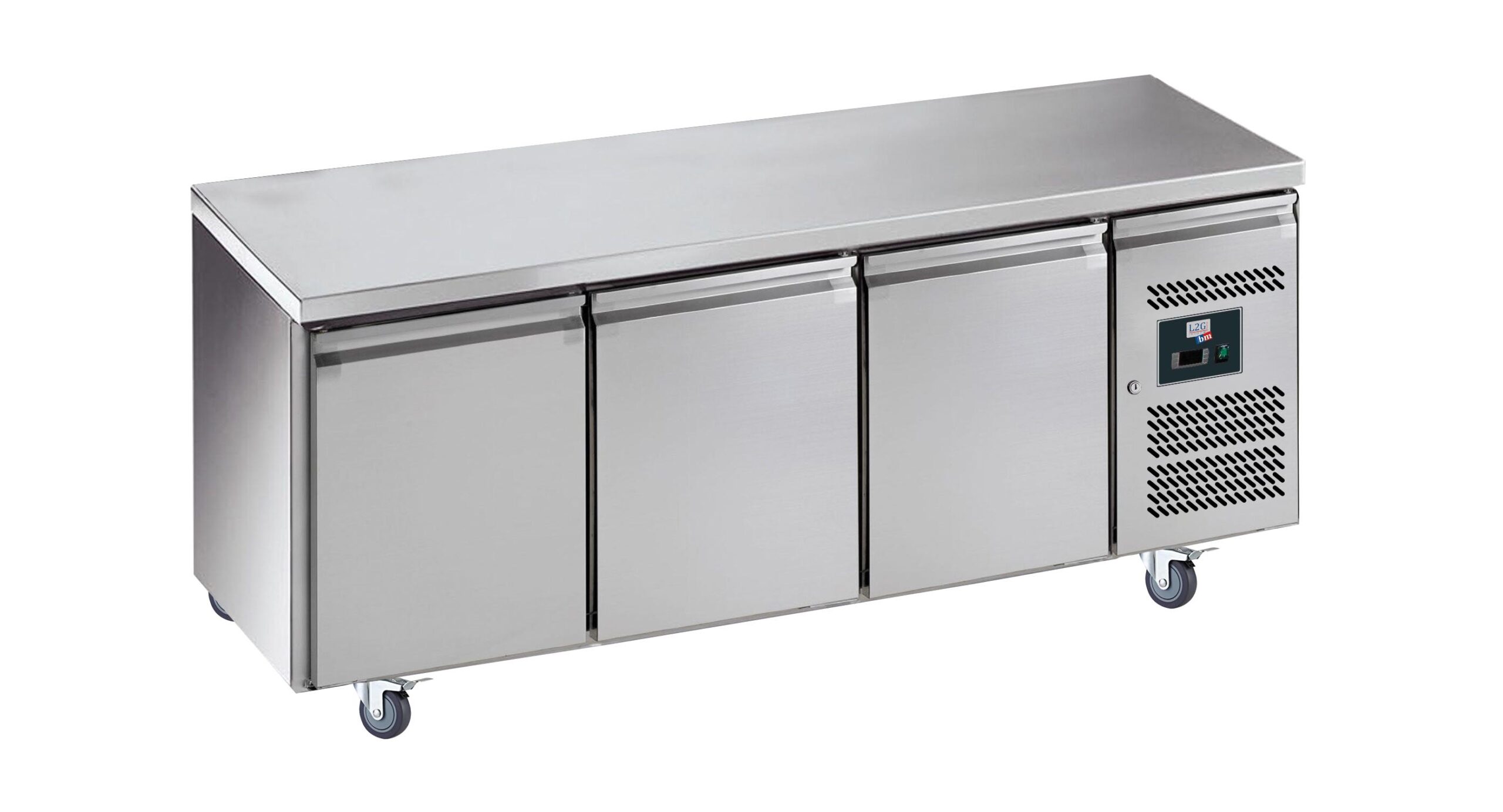 DESSERTE REFRIGEREE INOX CENTRALE, -2/+8°C, 3 P. GN1/1 SUR ROULETTES Ø 100 MM