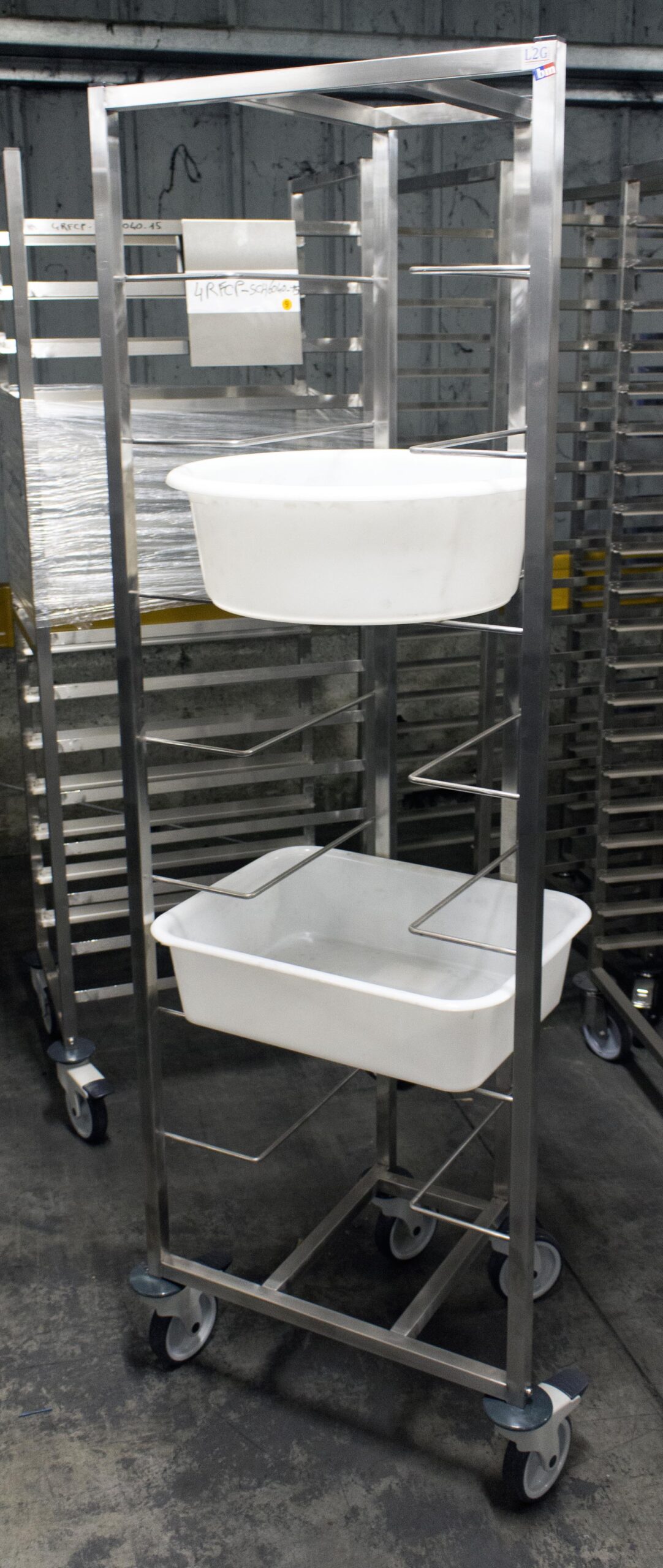 ECHELLE INOX SOUDEE POUR 8 BACS DE DIVISEUSE CHAPE POLY, DONT 2 AVEC FREINS