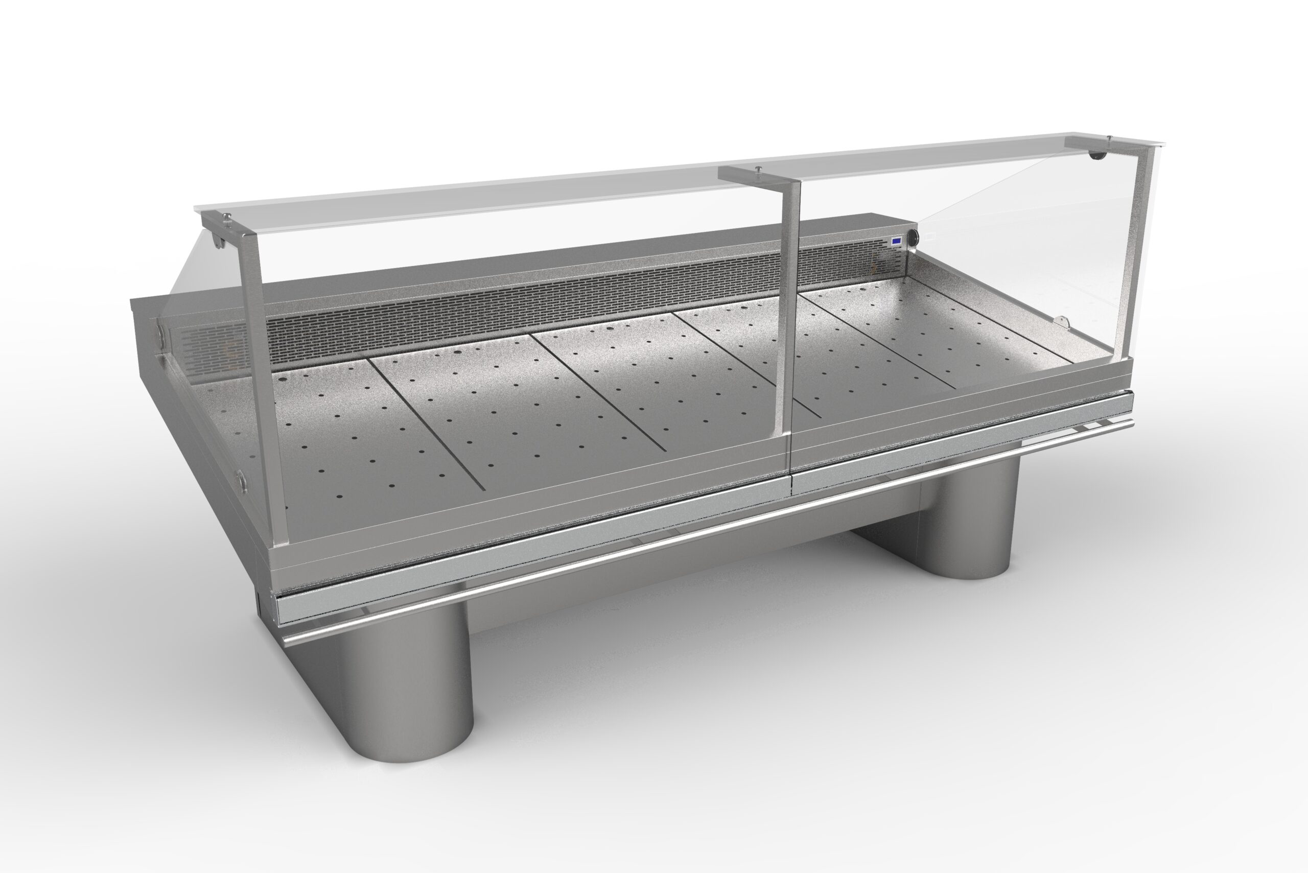 Etal droit réfrigéré sur groupe logé avec serpentin, construction inox AISI 304