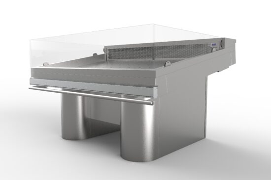 ETAL REFRIGERE DROIT SUR GROUPE, FROID DE CONTACT+EVAPO, VITRES BASSES, PIEDS OBLONGS